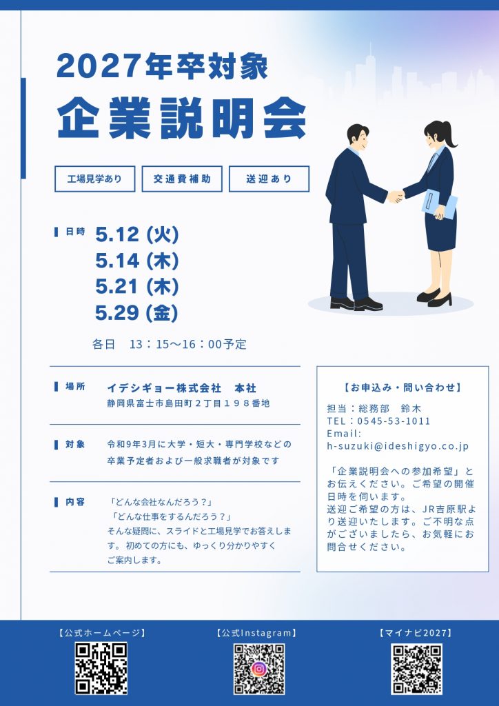 イデシギョーでは、当社のことをより深く、よりリアルに知っていただくために2027年卒の皆様を対象とした