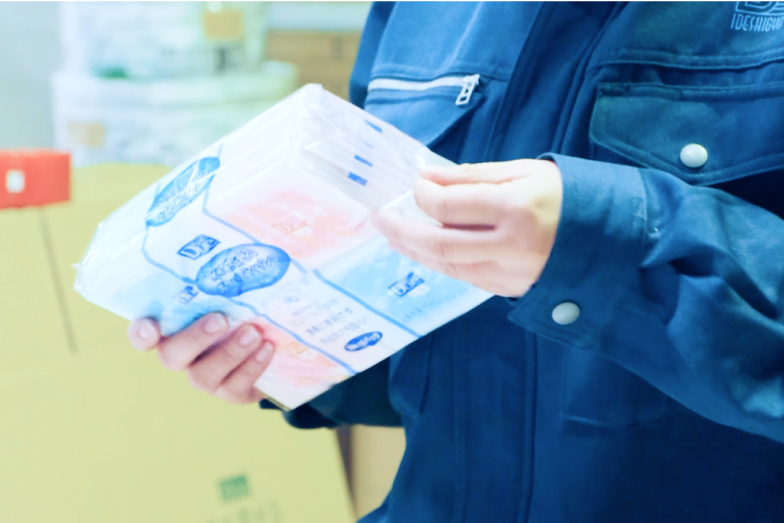 ポケットティッシュは、いざという時に素肌に触れる大切なアイテムです。私たちは、長年の家庭紙づくりで培った技術を活かし、ティッシュそのものの柔らかさ、なめらかさを追求。受け取った方、使う方、すべての人に心地よさを感じていただける、やさしい肌ざわりにこだわっています。